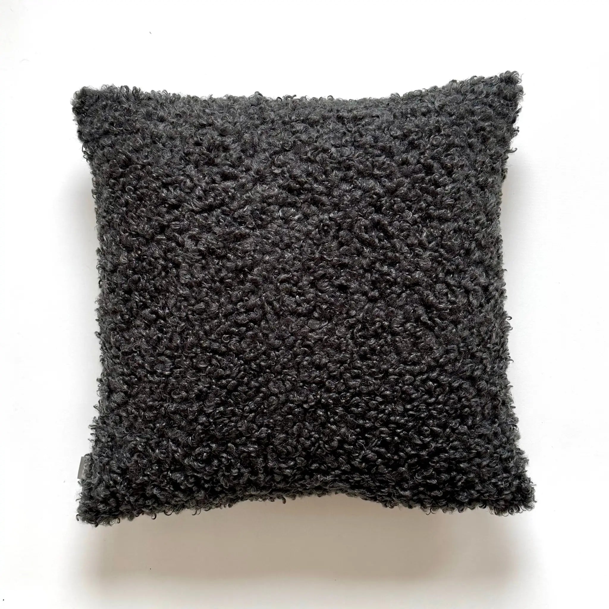 Svart kuddfodral 45x45 med textur i fårskinnsimitation – framsida