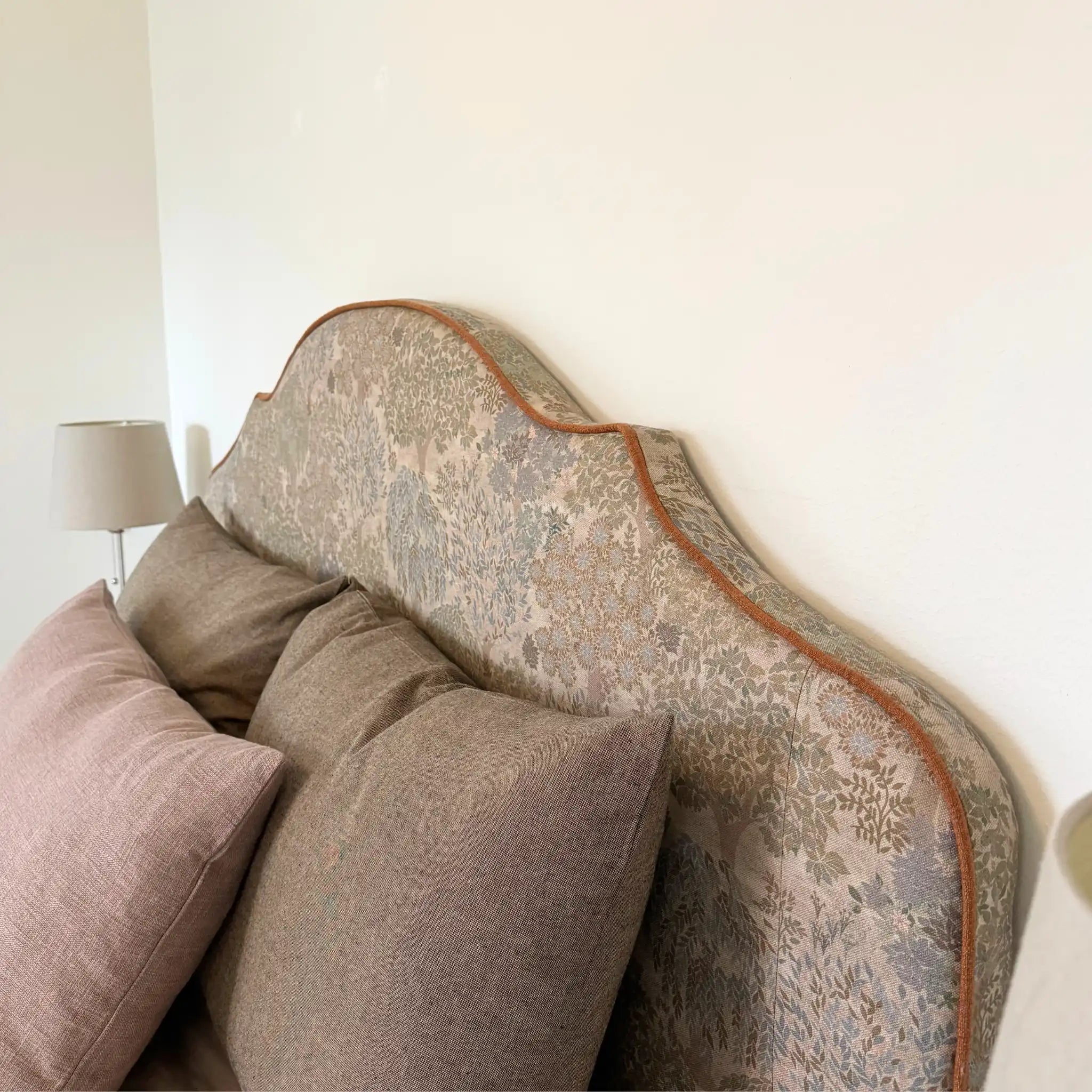 Kuddfodral i tegelröd och khaki färg i mjuk linnekänsla i sovrum