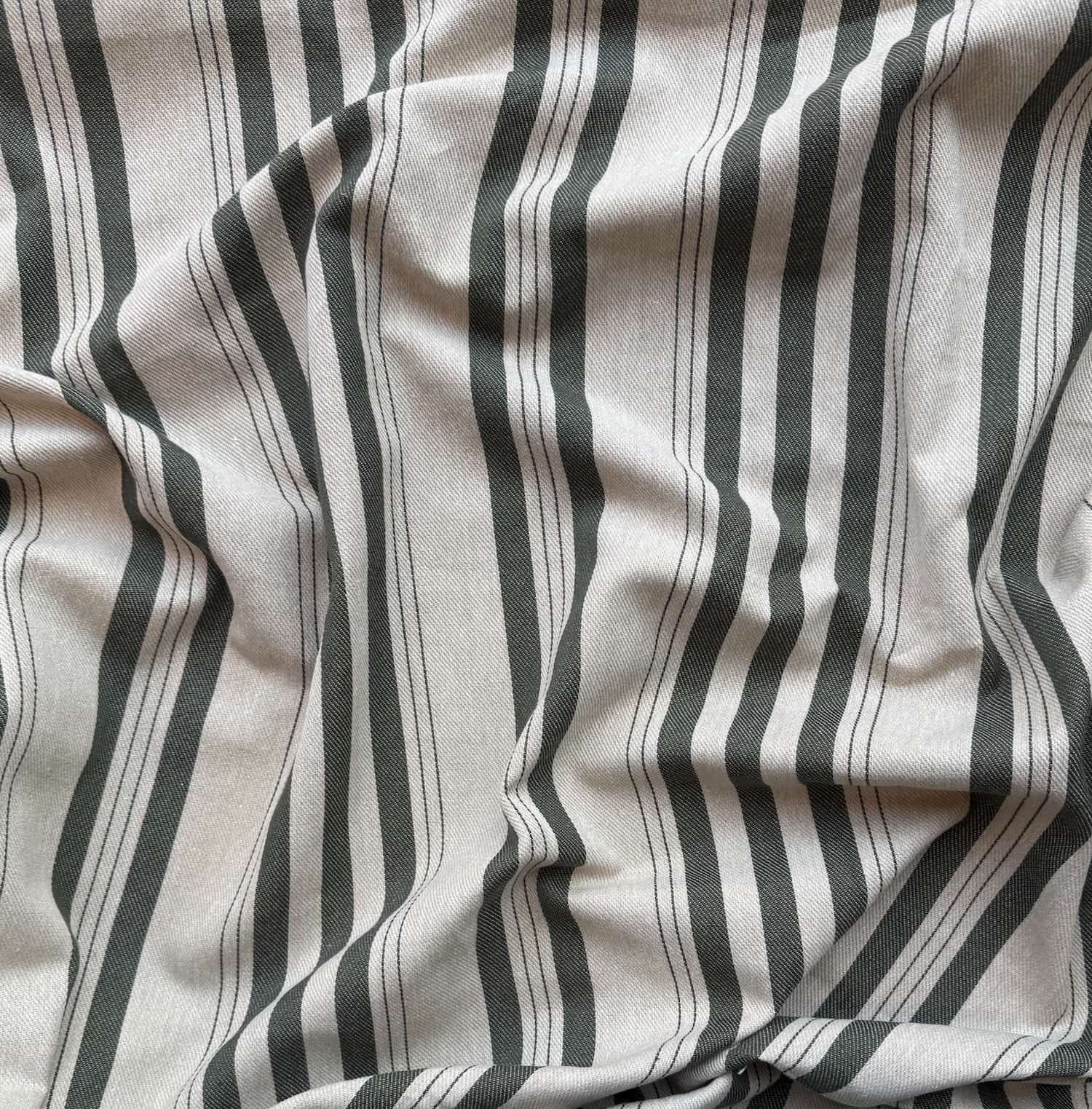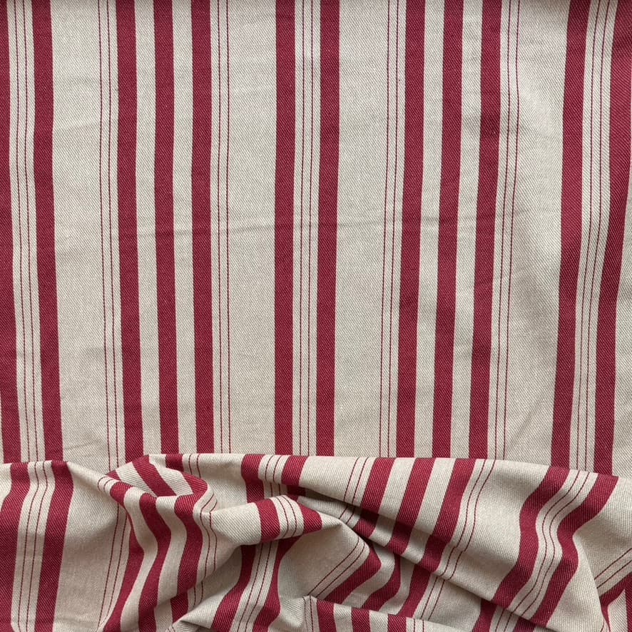 Ett charmigt, randigt tyg med klassisk design och en tidlös känsla – perfekt för dig som gillar stilren men personlig inredning. Tyget är tillverkat av 80 % återvunnen bomull och 20 % återvunnen polyester, vilket gör det till ett mer hållbart val utan att kompromissa med kvaliteten.